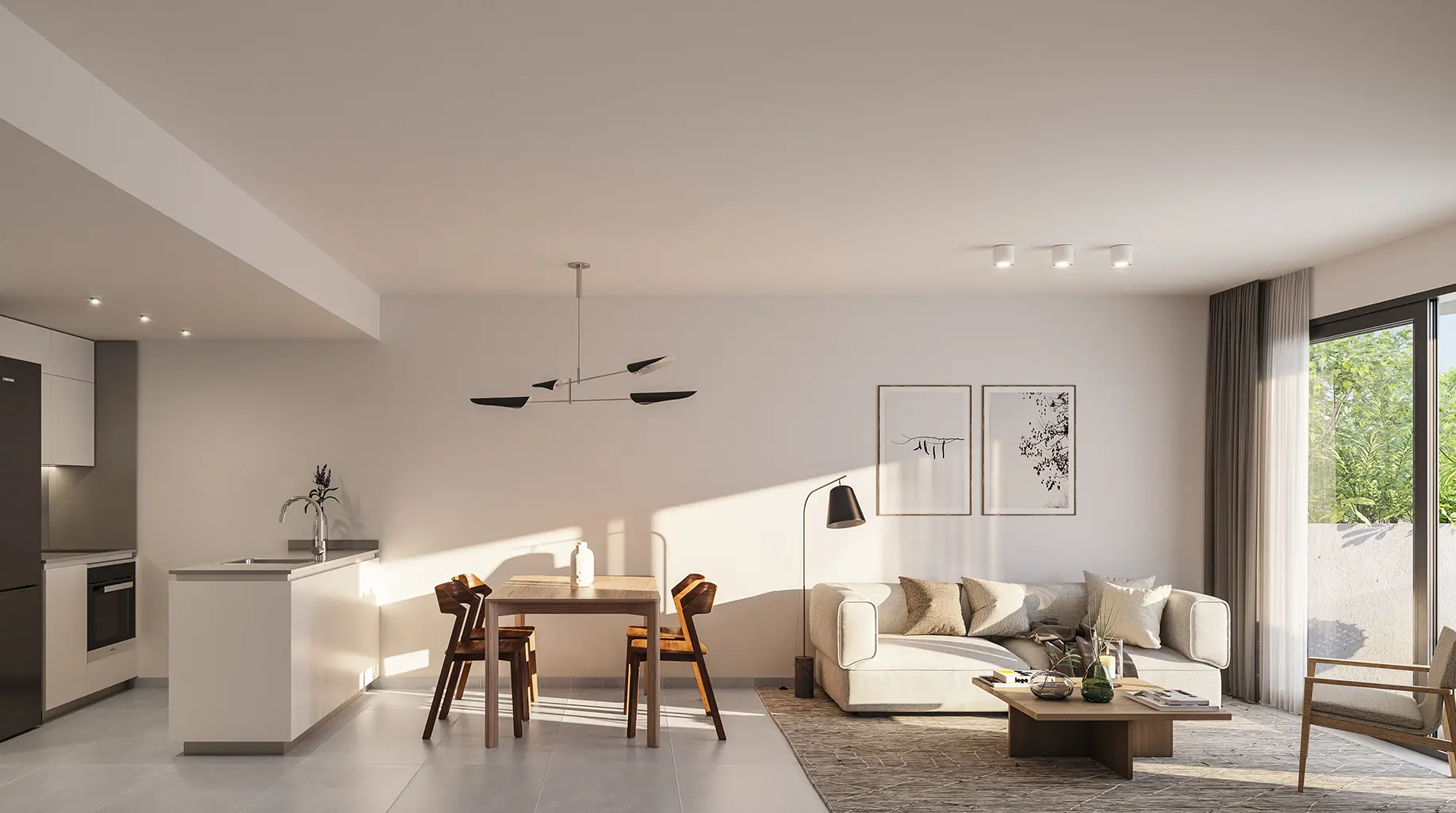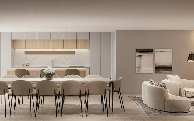 En los interiores de cada unidad y en los espacios comunes las texturas, la luz, los detalles y las materialidades completan la sensación de cálida elegancia. Las terminaciones y la vegetación sensiblemente curadas logran que cada espacio sintetice diseño, identidad y funcionalidad.