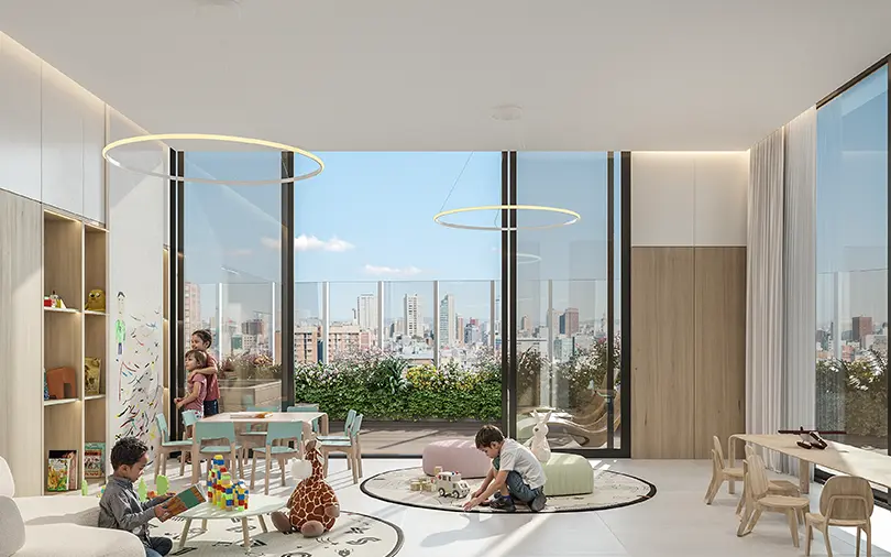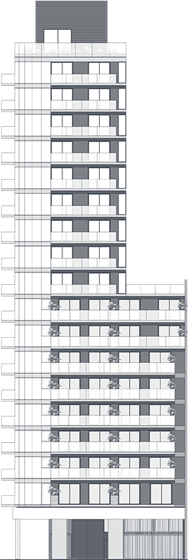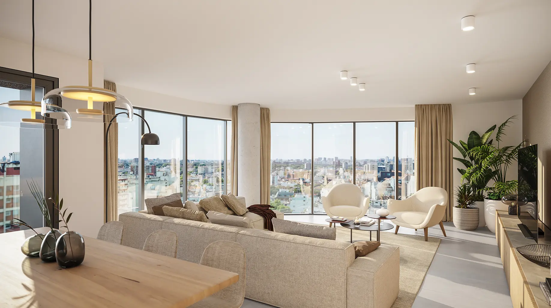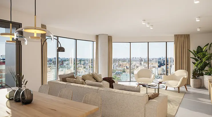 Entre los niveles 9 y 18, las unidades semipiso de 4 ambientes ofrecen un diseño que prioriza la funcionalidad y el confort. Sus amplios ventanales inundan los espacios de luz natural, creando una conexión única con el entorno y una sensación de amplitud que transforma cada día en una experiencia premium.