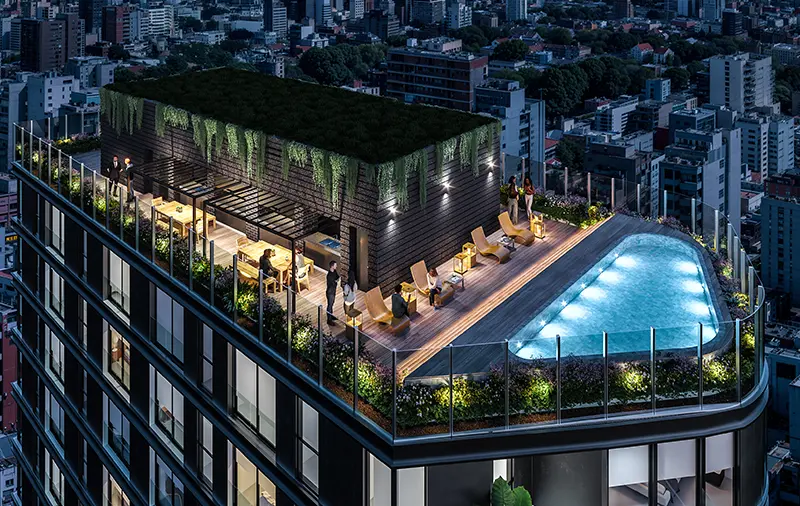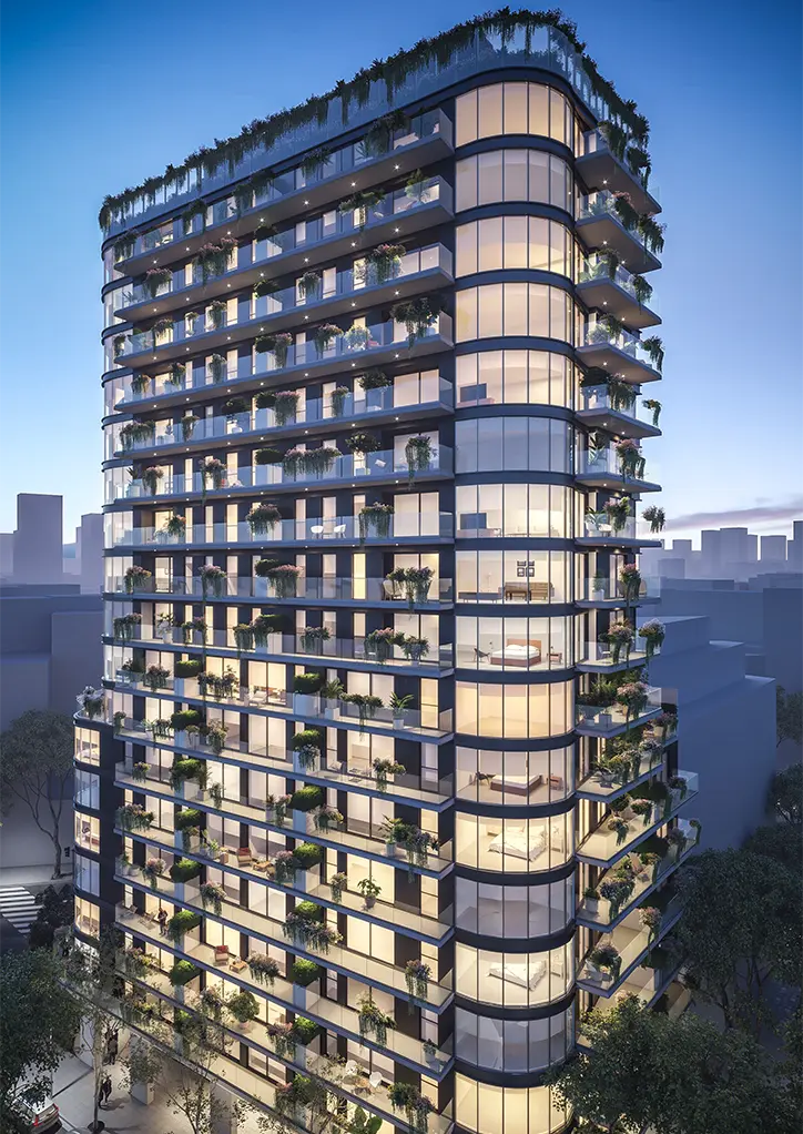 Con 74 unidades que van desde 56 hasta 204 m2, los departamentos de 2 y 3 ambientes, ubicados entre los niveles 2 y 8, cuentan con terrazas verdes en altura que te acercan a la naturaleza urbana. Un diseño contemporáneo y materiales de alta calidad completan un espacio pensado para vos.